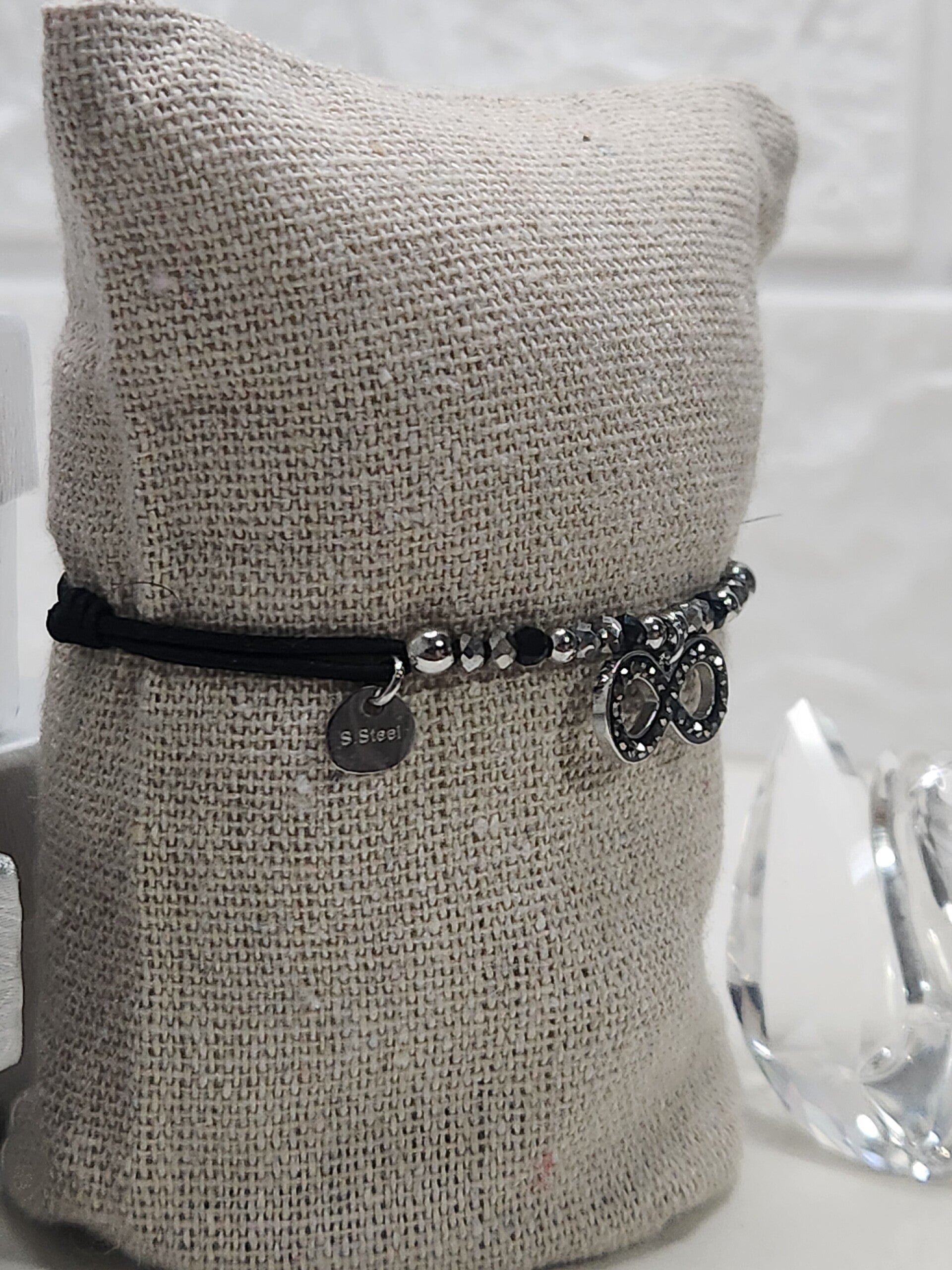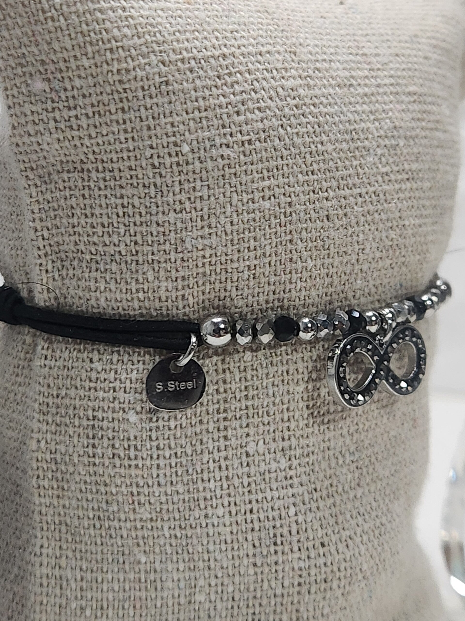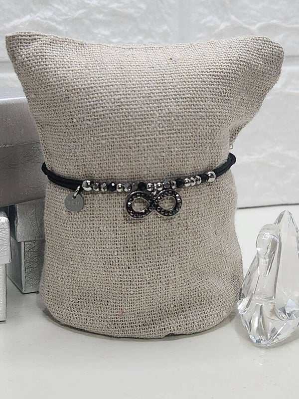 ⚫ Diseño Único: Cordón negro ajustable y cuentas de plata o color plata, acentuadas por el llamativo dije de infinito con incrustaciones brillantes.